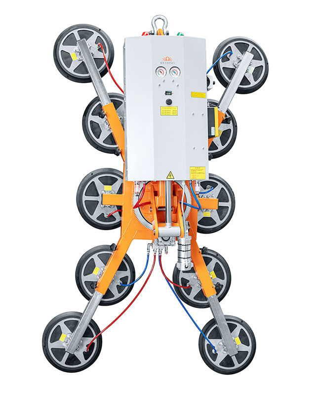 Der OKTOPUS® GL-M 1400 EA ist zum Handling von großformatigen Glasscheiben und Fensterelementen bis zu einem Gewicht von maximal 1400 kg konzipiert. Er ist mit einem 2-Kreis Vakuumsystem für den Einsatz auf Baustellen nach DIN EN 13155 ausgestattet.