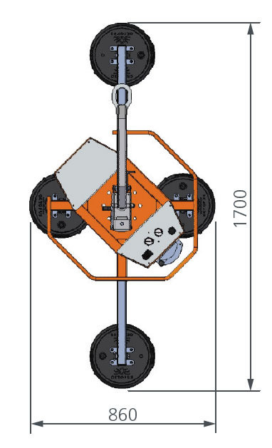 Die extrem geringe Bauhöhe des OKTOPUS® GLASS-Jack GL-N 400/300 von nur 190 mm erlaubt die Montage von Glas- bzw. Fassadenelementen in den i.d.R. nur max. 30 cm breiten Freiräumen zwischen Bauwerksfront und davor stehendem Gerüst. Verlängerungsarme erlauben das Handling von Elementen bis zu einem Gewicht von maximal 400 kg (horizontal) bzw. 300 kg (vertikal). Die optional verfügbare Abblaseinrichtung erleichtert und beschleunigt das Lösen angesaugter Gläser.