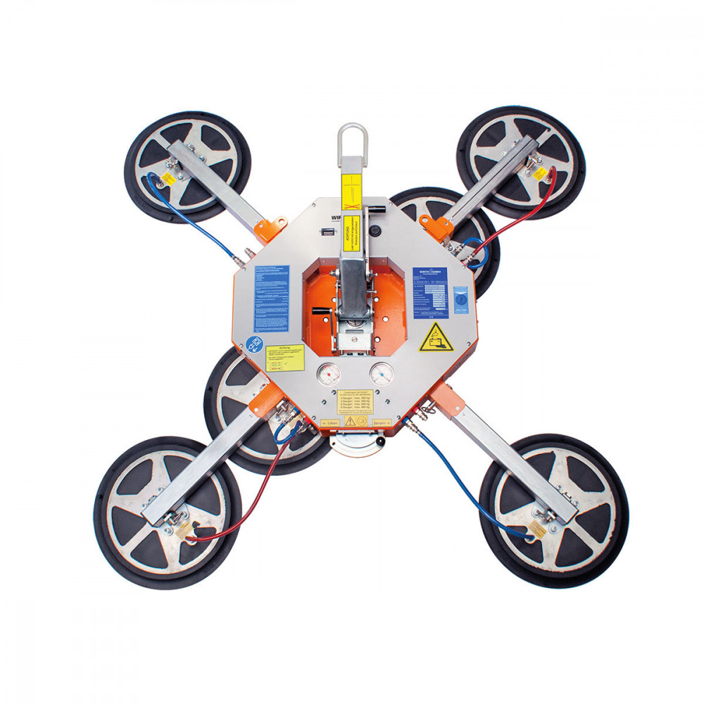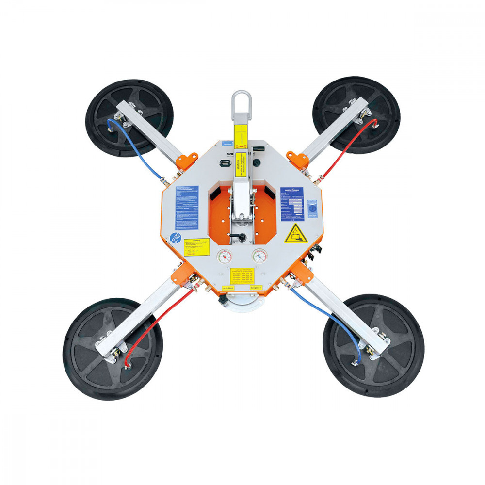 Der OKTOPUS® GLASS-Jack GL-RN 400/600/800 ist ein modular aufgebauter Vakuumheber mit Dreh- und Schwenkfunktion, für 3 Lastklassen und verschiedene Scheibenformen.