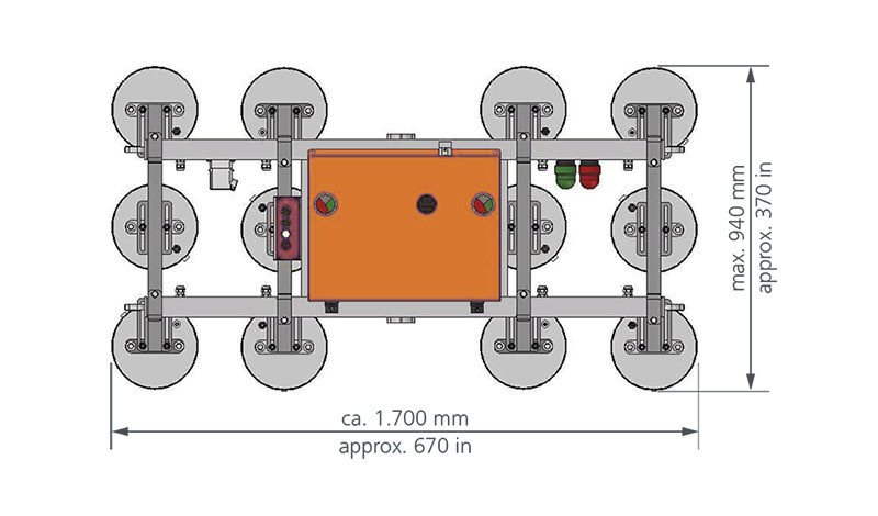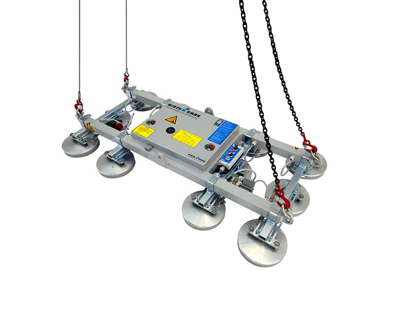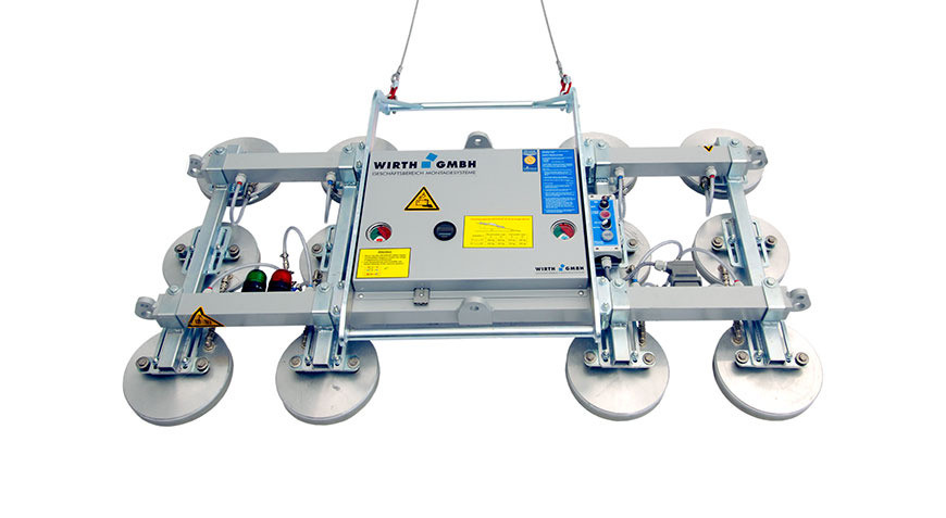 Durch die Verwendung der bewährten Wirth Rund- und Längssauger ist mit dem OKTOPUS® PANEL-Jack KT-B der Transport und die Montage nahezu aller handelsüblichen Sandwichelemente und vieler Trapezblechprofile möglich.